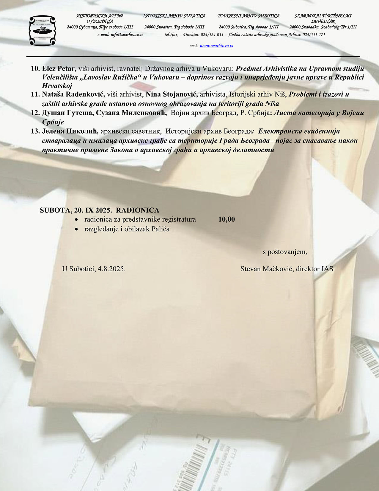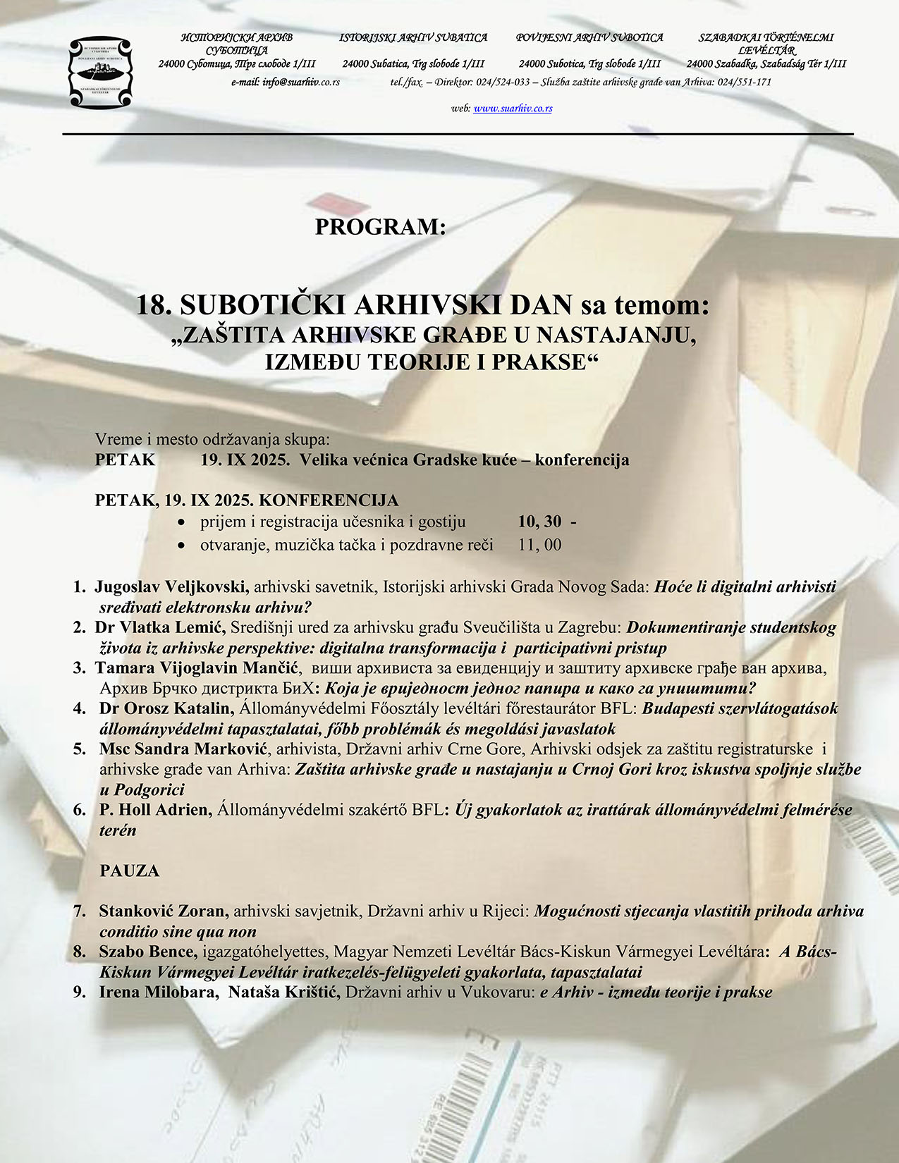 Осамнаести суботички архивски дан је одржан 19. септембра 2025. у великој већници Градске куће.